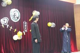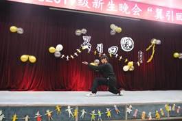 精彩节目继续。武术协会的两位师兄一人吹笛,一人献武,配合默契,张弛有度,在举手投足之间尽显武术的魅力。