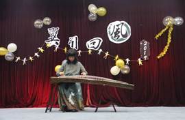 诗情继续。彭佩瑜同学的古筝曲《浏阳河》瞬间带我们来到了弯过了九道湾的浏阳河旁,闭上眼聆听,仿佛心灵都受到了洗涤。