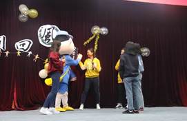 勾起回忆的画面散去,魔仙堡的小摸仙们为我们演绎了一位勇士斩杀巨龙抱得美人归的舞台剧《达拉崩吧》,她们挥动魔仙棒为观众带来了欢乐。
