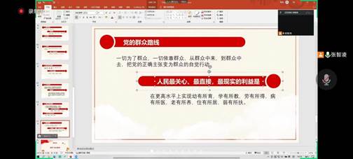 会议伊始,张智凌带领同学们学习了北京市第十三次党代会的主题,此次党代会的主题是高举中国特色社会主义伟大旗帜,以习近平新时代中国特色社会主义思想为指导,更加奋发有为推动新时代首都发展,为率先基本实现社会主义现代化而奋斗。并且回顾了蔡奇同志在会议上的报告,报告中回顾了过去五年的工作,在过去的工作中取得了诸多成就,同时也总结了经验,认识到了许多不足。并且提出了未来的工作总体布局,要继续完善发展。蔡奇同志讲的最后一点是要坚定不移推进全面从严治党,这也是所有党员需要身体力行的。